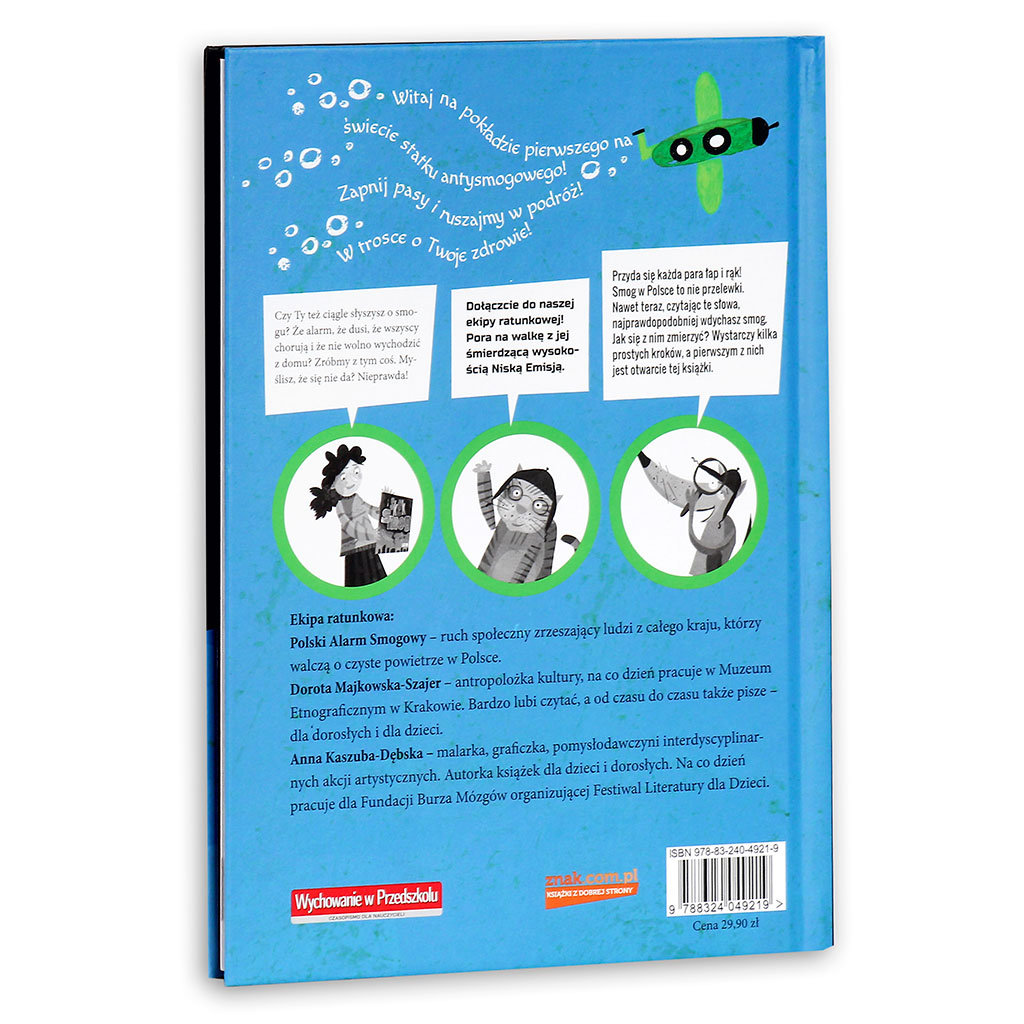 Witaj na pokładzie pierwszego na świecie statku antysmogowego. Zapnij pasy i ruszajmy w podróż w trosce o Twoje zdrowie. Dołączcie do naszej ekipy ratunkowej. Pora na walkę z Jej Śmierdzącą Wysokością Niską Emisją i gangiem mikrotrucicieli. Smog w Polsce to nie przelewki. Zagrożeni jesteśmy wszyscy – od dzieci, przez nastolatki i dorosłych. Nawet w tej chwili, czytając te słowa, najprawdopodobniej wdychasz smog. Jak się z nim zmierzyć? Jak możesz przeciwdziałać? Wystarczy kilka prostych kroków, a pierwszym z nich jest… otwarcie tej książki.