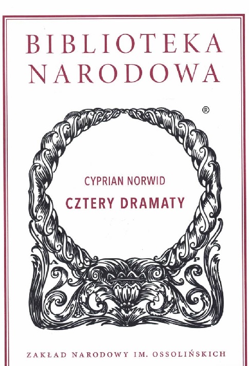 Cztery dramaty / Cyprian Norwid ; wstęp i opracowanie Kazimierz Braun. - Wydanie pierwsze. - Wrocław : Zakład Narodowy im. Ossolińskich, 2019. - CXLIII, [1], 594 strony, [1] karta tablic : ilustracje ; 18 cm.