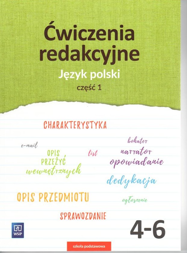 Ćwiczenia redakcyjne dla uczniów klas 4-6 zawierają szesnaście rozdziałów poświęconych formom wypowiedzi przewidzianym w podstawie programowej na ten etap kształcenia. Są doskonałym uzupełnieniem dwóch cykli WSiP do klas 4-6: "Słowa z uśmiechem" i "Jutro pójdę w świat". Mogą także służyć uczniom starszych klas do doskonalenia umiejętności redagowania tekstów. Publikacja oprócz ćwiczeń redakcyjnych obejmuje najważniejsze informacje teoretyczne i praktyczne wskazówki niezbędne do prawidłowego sformułowania: planu; opisu przedmiotu, obrazu, krajobrazu i przeżyć wewnętrznych; charakterystyki postaci rzeczywistej i literackiej; opowiadania; listu tradycyjnego i e-maila; sprawozdania; zaproszenia; ogłoszenia; dedykacji; notatki; życzeń i podziękowań; własnych opinii oraz scenariusza filmowego. Ćwiczenia mają uniwersalną formę, która umożliwia zarówno samodzielną pracę uczniów, jak i wykorzystanie publikacji na lekcjach.
