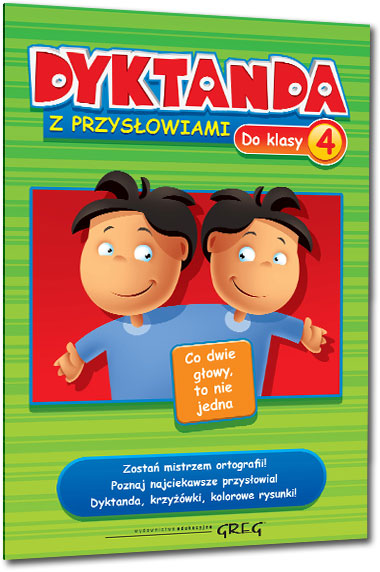 Niewiele jest straszniejszych chwil w szkolnym życiu niż słowa nauczycielki: „Piszemy dyktando!”. Język polski pełen jest wyjątków i trudnych do zapisania słów. Żeby je zapamiętać i nie mieć problemów w szkole, trzeba jak najwięcej ćwiczyć. "Dyktanda z przysłowiami" Wydawnictwa GREG to idealna seria do samodzielnego ćwiczenia ortografii. Książeczki dostosowane są poziomem i długością do wieku uczniów, a wybór słówek obejmuje najczęściej spotykane w szkolnych dyktandach. Naukę uprzyjemniają kolorowe, zabawne ilustracje oraz ciekawe krzyżówki do każdego tekstu. Wielkim atutem "Dyktand z przysłowiami" są ich treści, które wyjaśniają najciekawsze przysłowia.