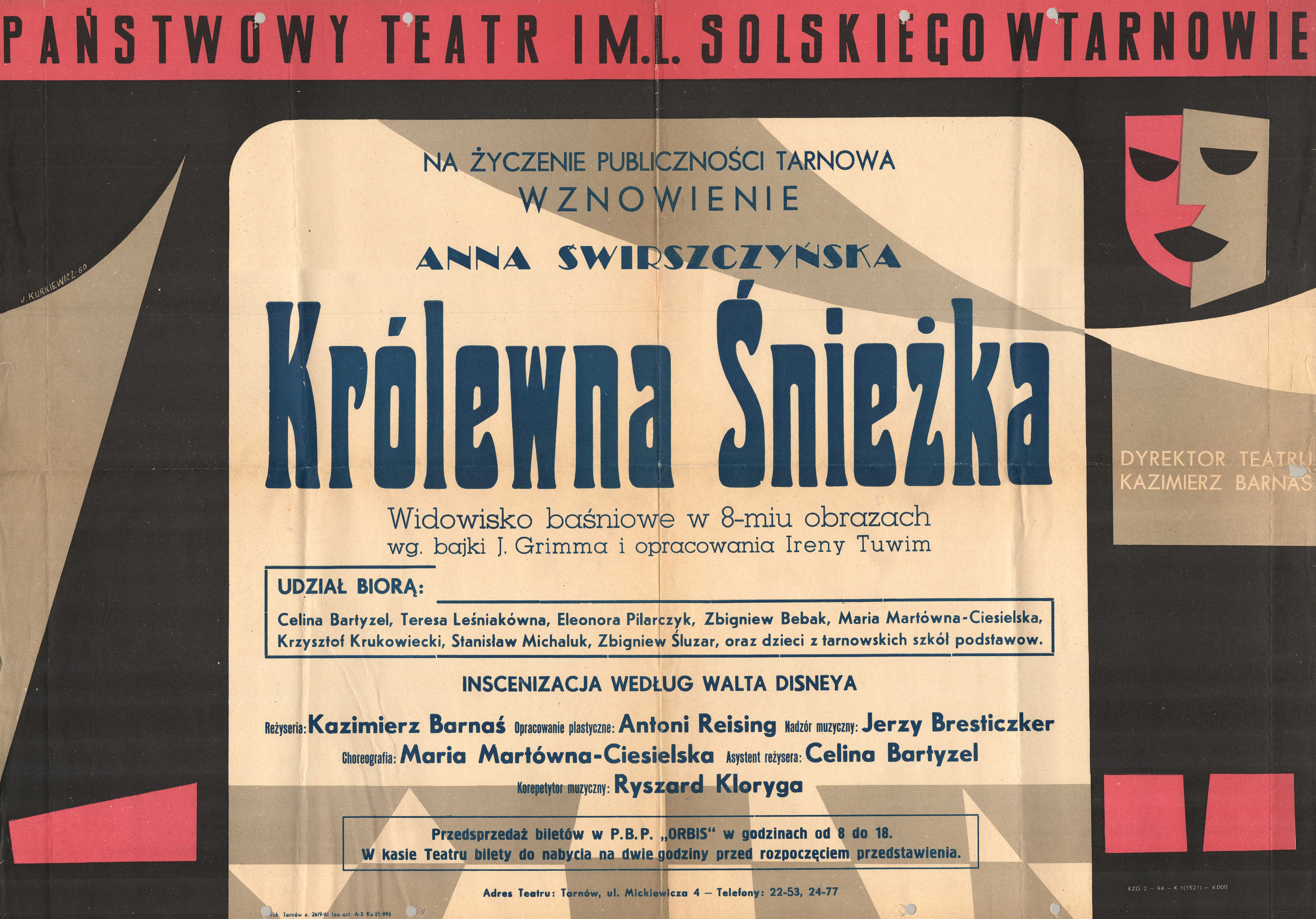 Reżyseria: Kazimierz Barnaś, opracowanie plastyczne: Antoni Reising, nadzór muzyczny: Jerzy Bresticzker, choreografia: Maria Martówna-Ciesielska, asystent reżysera: Celina Bartyzel, korepetytor muzyczny: Ryszard Kloryga.