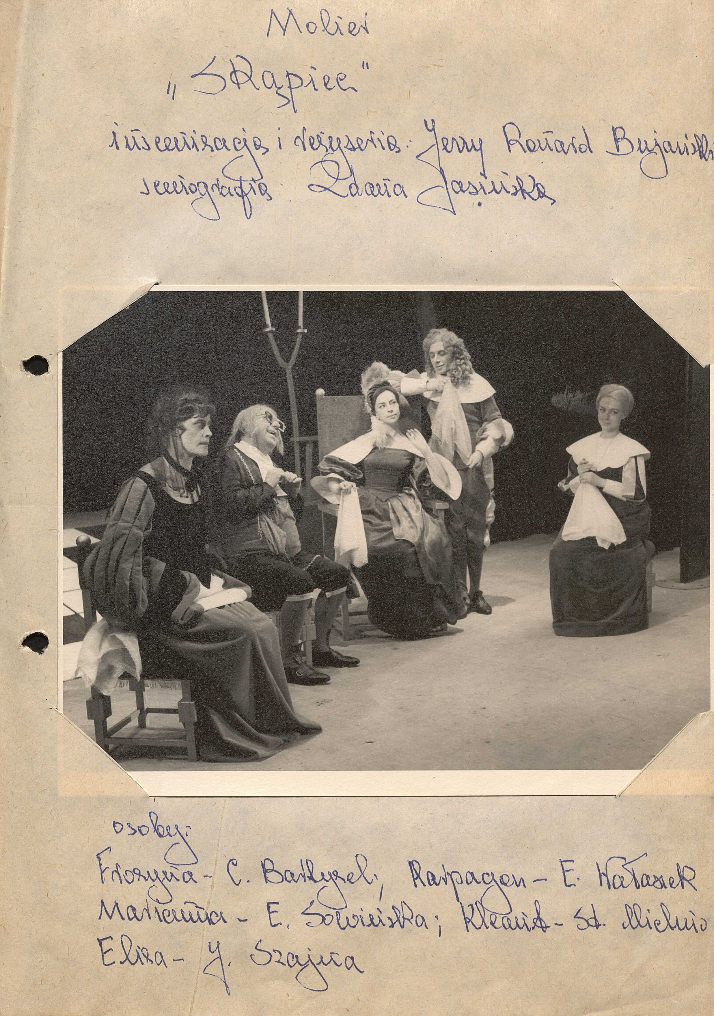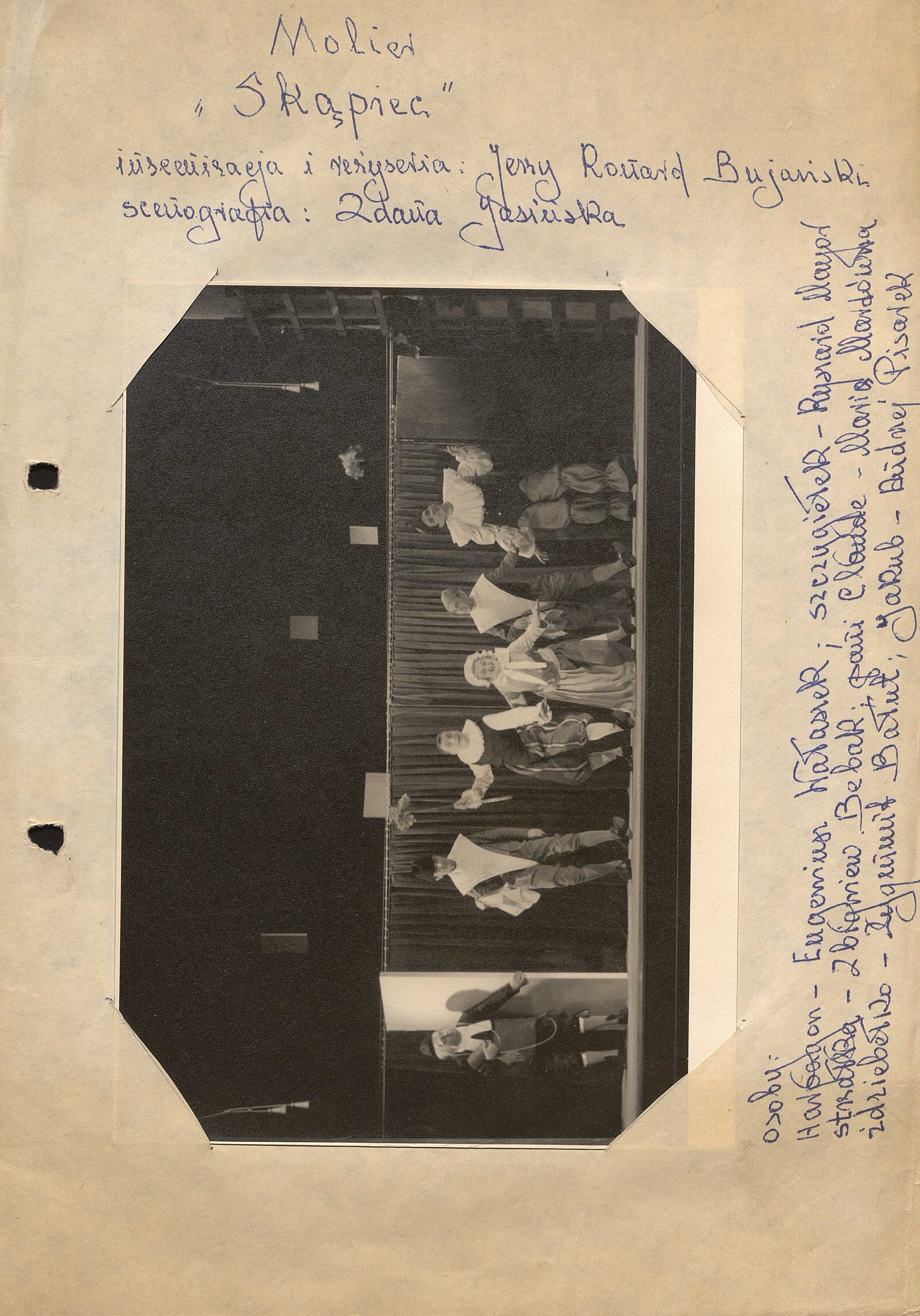 W opisie zdjęcia nazwa autora, tytuł sztuki, nazwiska reżysera, scenografii.