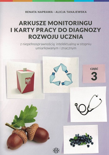 Zestaw zawiera kompleksowe narzędzie do diagnozy rozwoju ucznia z niepełnosprawnością intelektualną w stopniu umiarkowanym i znacznym, na które składają się arkusze monitoringu i karty pracy. Arkusze umożliwiają: - dokonanie diagnozy skali rozwoju ucznia - określenie poziomu opanowania wiedzy i umiejętności opisanych w podstawie programowej - ocenę postępu oczekiwanych osiągnięć i ujawniających się trudności w zakresie rozwoju i opanowania umiejętności: samoobsługowych, społecznych, komunikacji werbalnej, niewerbalnej, przygotowania do nauki pisania i czytania, motoryki małej i dużej, elementarnych umiejętności matematycznych, edukacji przyrodniczej, muzyki z rytmiką, plastyki, techniki, wychowania fizycznego. Pracę z kartami ułatwia dołączony ramowy program edukacyjno-terapeutyczny dla dzieci i młodzieży z niepełnosprawnością intelektualną w stopniu umiarkowanym i znacznym. Druga część zestawu odnosi się do następujących działów podstawy programowej z obszaru "Ja i otoczenie": 1. Ja - członek rodziny: - moja rodzina - moje miejsce zamieszkania 2. Ja - uczeń: - moja klasa - moja szkoła 3. Ja - w rozmowie 4. Ja - członek społeczności lokalnej.