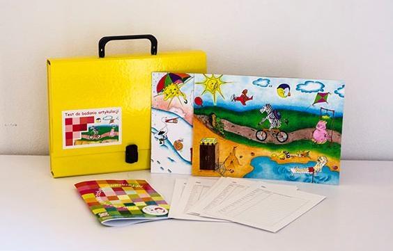 Przesiewowy test do badania artykulacji dzieci w wieku przedszkolnym / [Alicja Kabała] ; rysunki Agnieszka Kosiba. - Kraków : Centrum Metody Krakowskiej, [2015]. - 1 pudełko (6 kart z tabelami 21x15, 2 karty z ilustracjami 30x21) : ilustracje, tabele ; w pudełku 24x5x32 cm. + instrukcja ([10] stron)