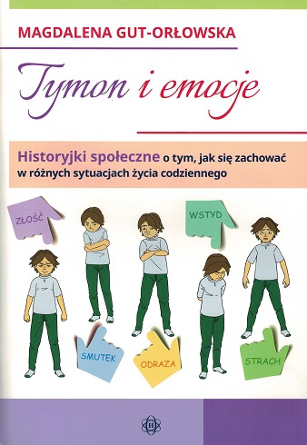 Tymon i emocje to kolejna część serii historyjek społecznych służących do pracy z osobami z zaburzeniami ze spektrum autyzmu oraz z dziećmi i nastolatkami z zaburzeniami zachowania i trudnościami emocjonalnymi. Tym razem opowiadania dotyczą przeżywania przez Tymona emocji, które mają wpływ na jego zachowanie. Przedstawiają trudne do opisania uczucia, z którymi poradzenie sobie wymaga różnych umiejętności. Do emocji tych należą: złość, strach, wstyd, odraza i smutek, które podzielone zostały na kategorie związane z konkretnymi sytuacjami. Podobnie jak w poprzednich częściach czytelnik odpowiada na pytania dotyczące zrozumienia historyjki, jak i samej sytuacji. Zadaniem osoby pracującej z tekstem jest również rozpoznanie emocji bohatera, zidentyfikowanie ich przyczyn, a także znalezienie adekwatnych i akceptowalnych społecznie sposobów radzenia sobie z nimi. Czytelnik może także określić, w jaki sposób dane emocje są wyrażane, zarówno przez mimikę i gesty, jak i odczucia w jego ciele.