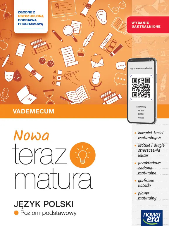 Vademecum z serii NOWA Teraz matura 2026 pomoże Ci przejść przez cały materiał wymagany na poziomie podstawowym – krok po kroku i konkretnie. Publikacja jest zgodna z uszczuploną podstawą programową, a jej uaktualniona wersja uwzględnia najnowsze zmiany w egzaminie.
