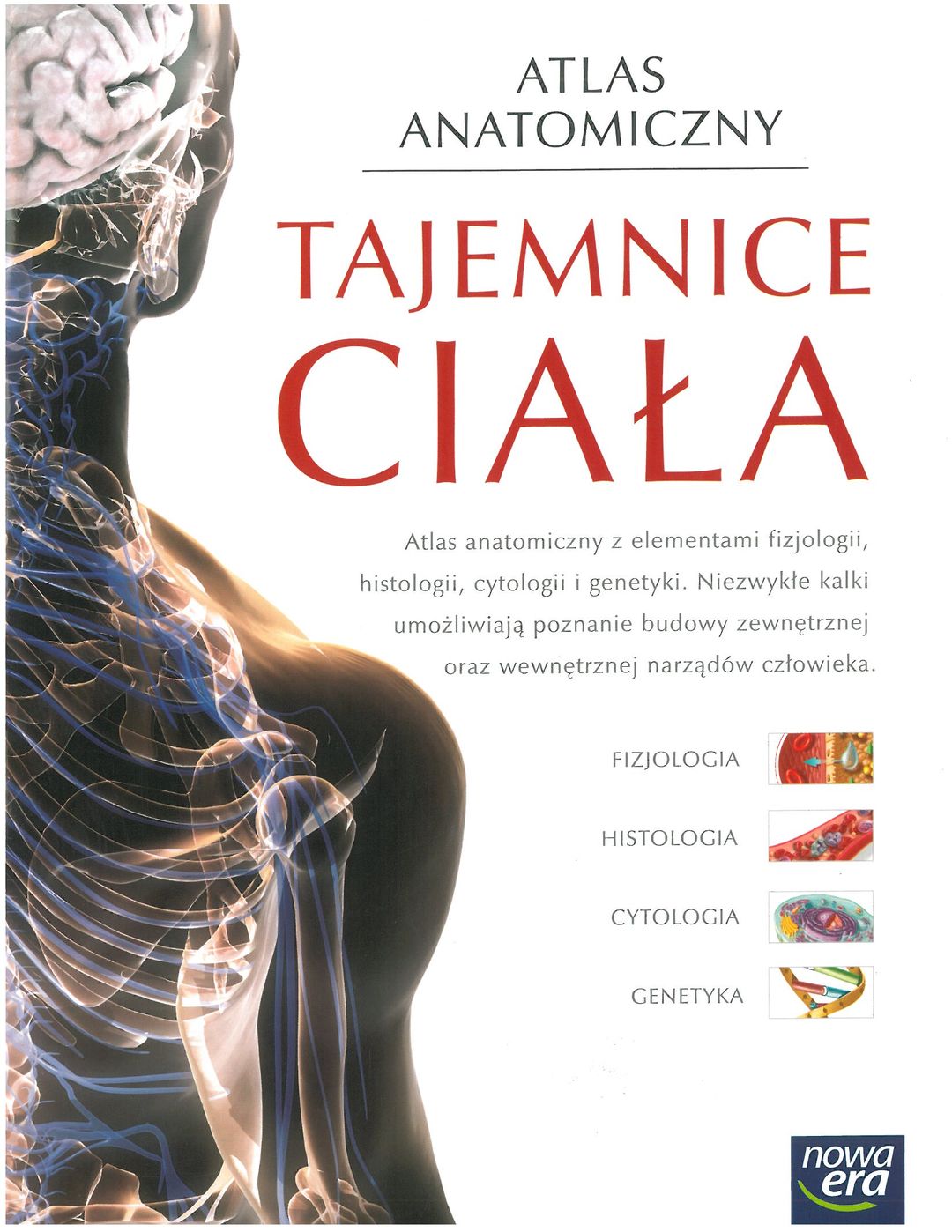 Na barwnie ilustrowanych stronach możemy znaleźć informacje dotyczące konkretnych jednostek ciała człowieka. Wysoka jakość wykonania publikacji, dbałość o detale ilustracji oraz atrakcyjność materiału w niej zawartego ułatwi każdemu poznanie ludzkiego organizmu. Atlas składa się z rozdziałów, które opisują: szkielet i mięśnie, układ krwionośny, limfatyczny i krwionośny, a także układ rozrodczy i moczowy. Pozwala to ukazać przekrój ludzkiego ciała i zrozumieć wszystkie jego elementy. Jest on nie tylko kompendium wiedzy anatomicznej. Można w nim także znaleźć informacje z zakresu fizjologii, histologii, cytologii oraz genetyki. Zawarta w nim rubryka "Patologie" pozwala zrozumieć przyczyny powstawania chorób w organizmie człowieka.