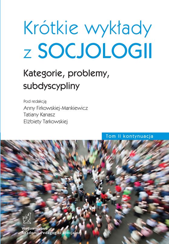 Książka składa się z kilku części przedstawiających wybrane kategorie społeczne (sprawiedliwość, tożsamość, płeć kulturową, naród), dokonujące się przemiany (w sferze edukacji, uczestnictwa w kulturze, w funkcjonowaniu społeczeństwa obywatelskiego), zagadnienia mediów (skandal jako zjawisko społeczne, reprezentacje ubóstwa w białoruskiej prasie), niektóre subdyscypliny socjologiczne (socjologię medycyny, socjologię emocji). Podobnie jak w pierwszym tomie, zamieściliśmy tu fragmenty oryginalnych badań, prowadzonych przez pracowników Instytutu Filozofii i Socjologii Akademii Pedagogiki Specjalnej im. Marii Grzegorzewskiej. Nowością jest opublikowanie komunikatu z badań międzynarodowych (Światowych Badań nad Wartościami) napisanego przez Alejandra Moreno, Renatę Siemieńską oraz Miguela Basáñeza. Może on stanowić doskonały materiał dyskusyjny podczas prowadzonych zajęć ze studentami. Prezentowany tom nie wyczerpuje wszystkich nowych zagadnień; z różnych powodów nie znalazły się w nim problemy, tematy, subdyscypliny socjologii istotne zarówno z punktu widzenia prowadzonej dydaktyki, jak i badań. Rysuje się też pewna dysproporcja między uwzględnianymi obszarami problemów, wśród których dominują zagadnienia kultury, co zresztą niekoniecznie jest wadą. Niemniej obecny tom znacznie wzbogaca oraz uzupełnia tom pierwszy naszego podręcznika.