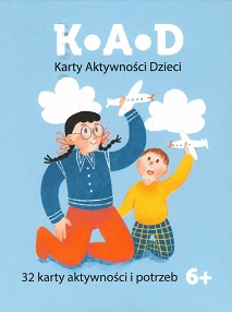 KAD Karty Aktywności Dzieci : 32 karty aktywności i potrzeb / autorka: Magdalena Wegner-Jezierska ; opracowanie graficzne: Hanna Lepieszkiewicz. - [Kraków] : Heim Produkty Terapeutyczno-Edukacyjne, [2024]. - 1 gra (32 karty) : tektura, kolor, karton ; w pudełku 13x10x3 cm + instrukcja (12 stron ; 11 cm)