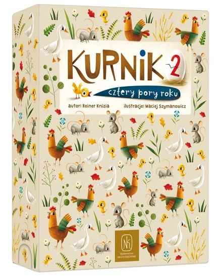 Kurnik 2 : cztery pory roku / autor: Reiner Knizia ; ilustracje: Maciej Szymanowicz. - Warszawa : Wydawnictwo Nasza Ksiegarnia, copyright 2025. - 1 gra (16 kwadratowych płytek, 16 okrągłych żetonów) : karton, kolor ; w pudełku 18x14x4 cm + instrukcja ([2] strony : inlustracje ; 16x38 cm).