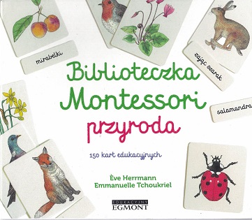 Biblioteczka Montessori : przyroda : 150 kart edukacyjnych / autor: Eve Herrmann ; ilustracje: Emmanuelle Tchoukriel ; [tłumaczenie: Ewa Świtlak]. - Warszawa : Wydawnictwo Egmont Polska, 2018. - 1 pudełko (150 kart luzem) : ilustracje ; 19x22 cm +Książka : [16] stron : ilustracje kolorowe ; 17 cm.