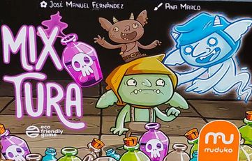 Mix Tura / autor: José Manuel Fernández ; ilustracje: Ana Marco ; tłumaczenie: Magdalena Sikorska. - Kraków : Muduko - Fabryka Kart Trefl, copyright 2024. - 1 gra (110 kart (10 kart Goblinów, 51 kart akcji, 13 kart zabójczych eliksirów, 30 kart bezpiecznych eliksirów, 1 karta Besztia), 1 znacznik tury, 4 czyste karty, 10 żetonów antidotum) : karton, tektura, kolor ; w pudełku 4x16x11 cm + instrukcja (15, [1] strona : ilustracje ; 14 cm).