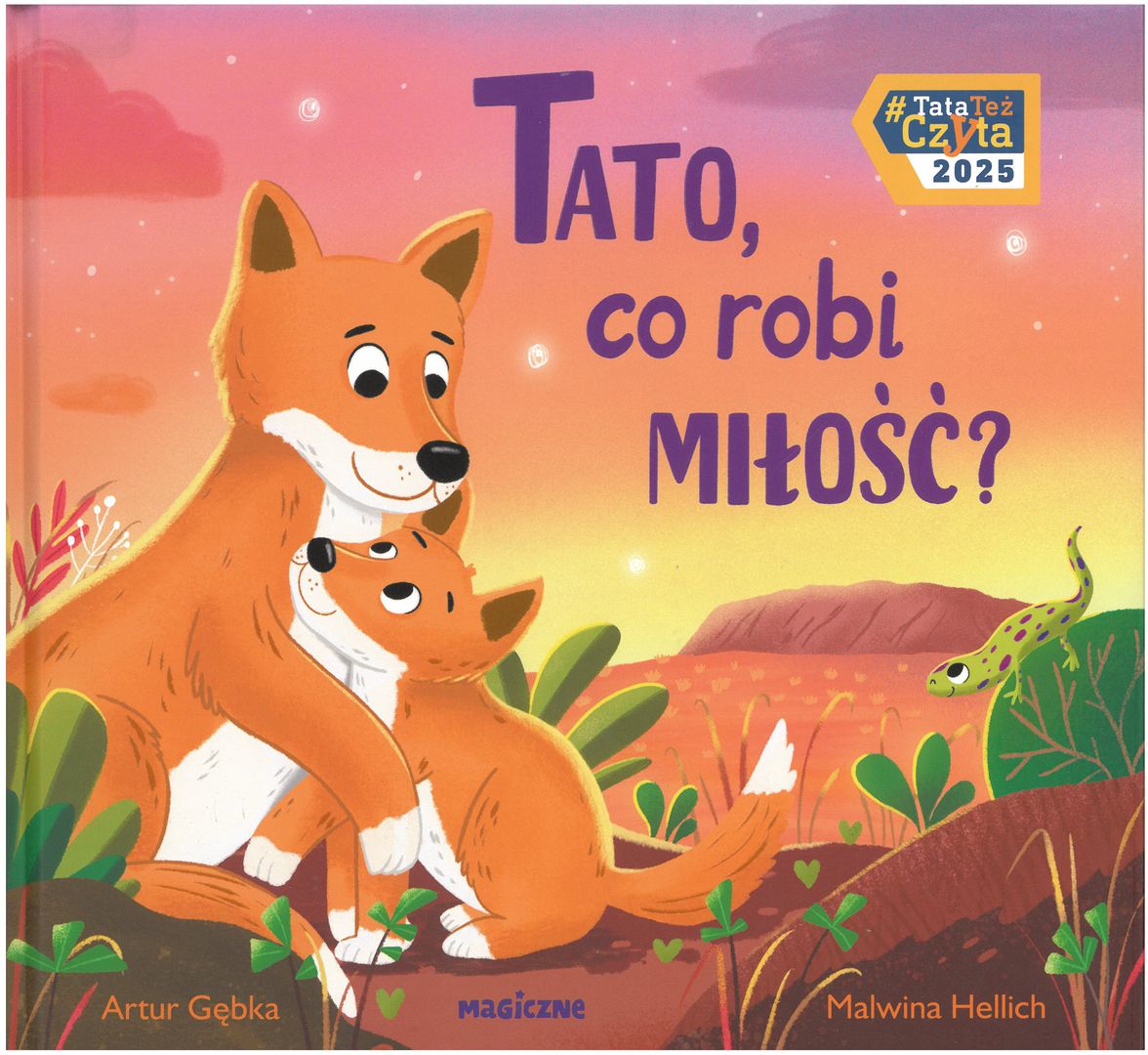 Tato, co robi miłość? / Artur Gębka ; zilustrowała Malwina Hellich. - Wydanie I. - Warszawa : Magiczne, 2025. - [33] strony : ilustracje ; 23x25 cm.