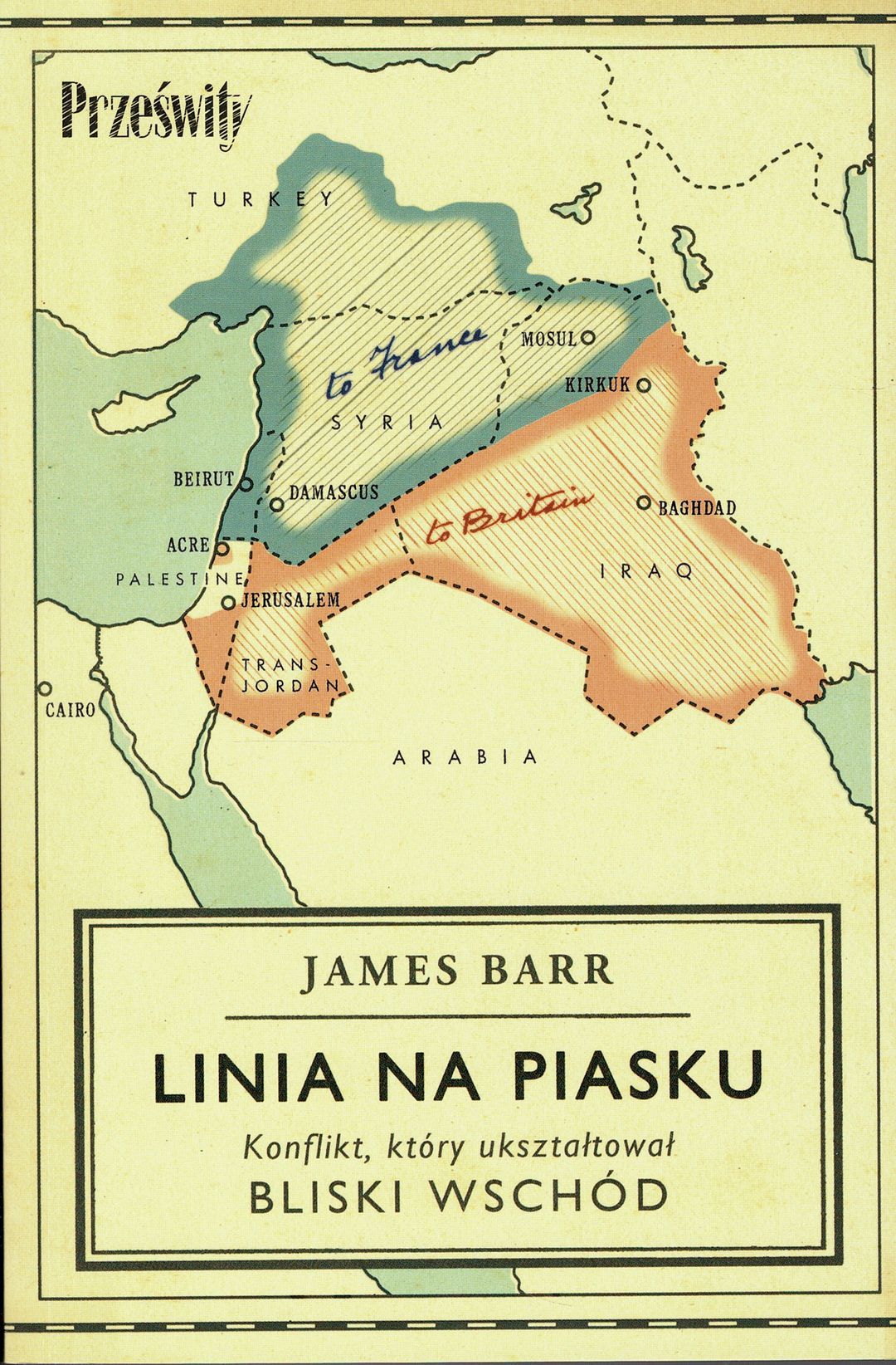 Fascynująca historia brytyjsko-francuskiej rywalizacji o wpływy na Bliskim Wschodzie i jej skutki. W 1916 roku, w połowie I wojny światowej, dwóch mężczyzn potajemnie dokonało podziału Bliskiego Wschodu. Byli to sir Mark Sykes - brytyjski polityk wizjoner, oraz François Georges-Picot – francuski dyplomata. Zawarta przez nich umowa, mająca rozładować napięcie zagrażające porozumieniu Entente cordiale, wyznaczała granicę interesów, linię, która biegła od Morza Śródziemnego do Persji. Francja objęła zwierzchność nad terytoriami leżącymi na północ, a Wielka Brytania przejęła władzę mandatową nad ziemiami na południe. Pomimo przeciwności zawarty wtedy pakt przetrwał wojnę i po jej zakończeniu stanowił podstawę do podziału regionu na pięć nowych państw, które znalazły się pod protektoratem Wielkiej Brytanii i Francji. Stworzenie brytyjskich mandatów Palestyny, Transjordanii oraz Iraku, a także objęcie przez Francję zwierzchności nad Libanem i Syrią doprowadziło do powstania dwóch sąsiadujących ze sobą niestabilnych terytoriów. Kolejne trzy dekady to ponura opowieść o przemocy i tajnych politycznych manipulacjach w wykonaniu polityków, dyplomatów, szpiegów oraz żołnierzy, w której istotną rolę odegrali m.in. T.E. Lawrence, Winston Churchill oraz Charles de Gaulle. Książka opowiada historię krótkiej, lecz niezwykle istotnej epoki panowania Wielkiej Brytanii i Francji na Bliskim Wschodzie. Wyjaśnia, w jaki sposób dawne antagonizmy pomiędzy dwoma mocarstwami rozpaliły obecny konflikt między Arabami i Żydami, a także doprowadziły ostatecznie do wojen – pomiędzy Wielką Brytanią a Francją w 1941 roku oraz między Arabami i Żydami w roku 1948.Wykorzystując odtajnione niedawno dokumenty brytyjskich oraz francuskich archiwów, James Barr wraca do tego ukrywanego konfliktu, by po raz pierwszy opisać zadziwiający rewanż Francji za odsunięcie jej od władzy w Libanie oraz Syrii na skutek działań Wielkiej Brytanii.