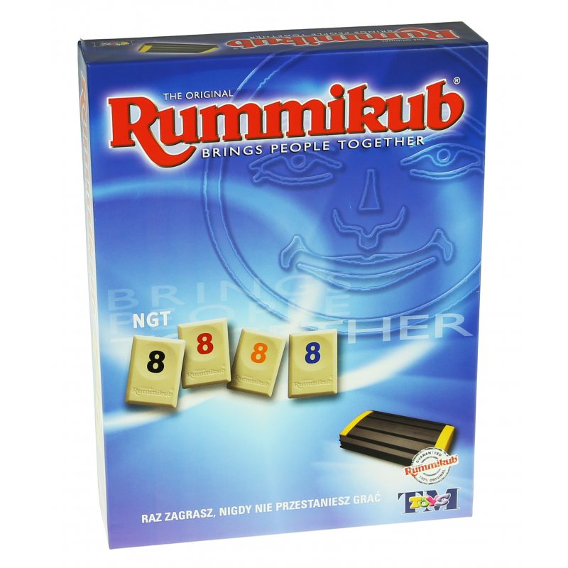 The Original Rummikub : brings people together : standard. - Szczecin : TM Toys, cop. 2014. - 1 gra (104 kostki, 2 jokery, 4 podstawki) : karton, tektura, plastik, kolor ; w pudełku 27x36x5 cm + instrukcja (4 strony : ilustracje ; 24 cm).