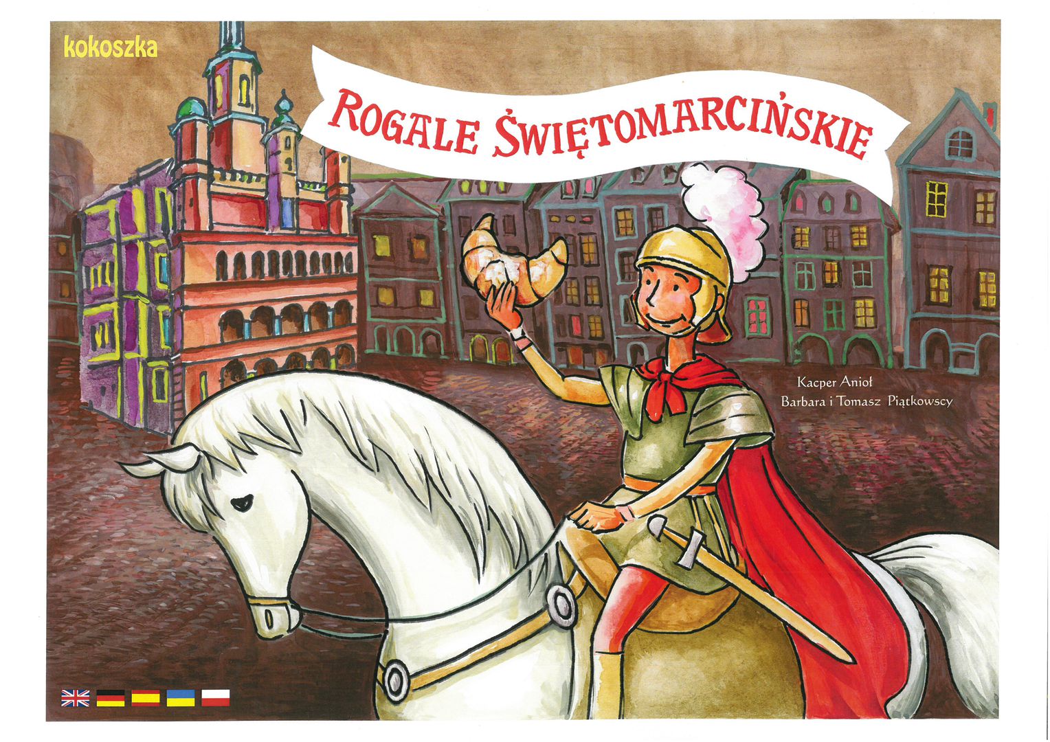 Rogale marcińskie, rogale świętego Marcina, to nic innego, jak po prostu rogale świętomarcińskie. Piekarz Walenty i jego sen, święty Marcin na koniu, znaleziona podkowa... o tym wszystkim opowiada legenda. Ale to nie wszystko... Jest tu też poruszony temat dzielenia się, mianowicie wg legendy piekarz Walenty nie chciał się dzielić z innymi. Jednak coś się wydarzyło, że się zmienił... ale o tym w naszej bajce. Zgadnijcie, czym się dzieli Walenty? Z tej bajki kamishibai dowiemy się, skąd się wzięła tradycja pieczenia rogali na dzień świętego Marcina - 11 listopada. Legenda ma też pozytywne przesłanie: warto zrobić coś dobrego dla innych, tak jak św Marcin i piekarz Walenty. Pozycja może być przydatna na lekcję: religia. (Opis ze strony Wydawcy).